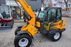 Bardzo dużym atutem maszyny jest jej masa własna - 2755kg - bez problemu nadaje się do transportu na przyczepie samochodowej do 3,5T DMC. Udźwig 1900kg !! Maszyna posiada prosty silnik Kuboty Bez DPF oraz Adblue.